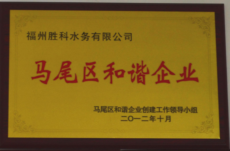 荣获2012年马尾区和谐企业创建工作领导小组颁发的“和谐企业”荣誉称号