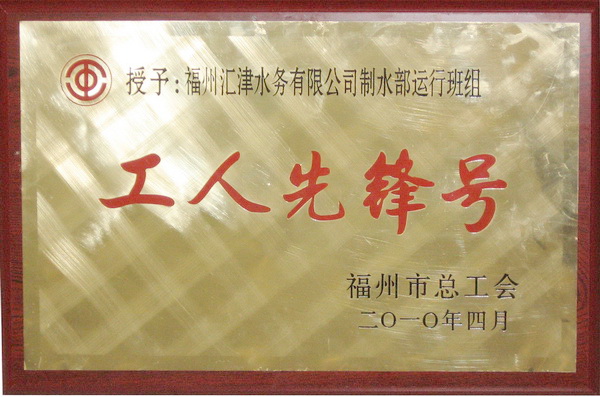荣获2010年福州市总工会颁发的“工人先锋号”称号