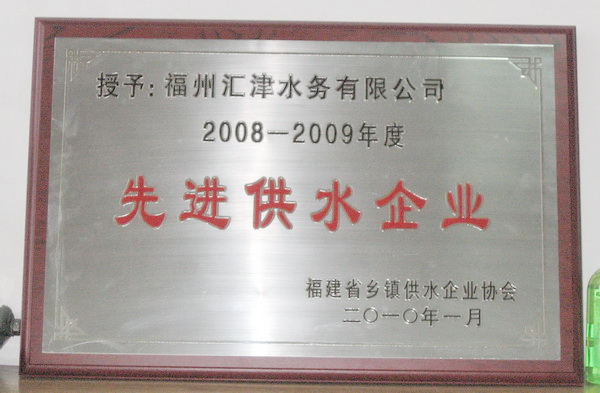 荣获福建省乡镇供水企业协会颁发的2008-2009年度“先进供水企业”称号