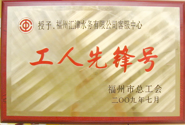 荣获2009年福州市总工会颁发的“工人先锋号”称号