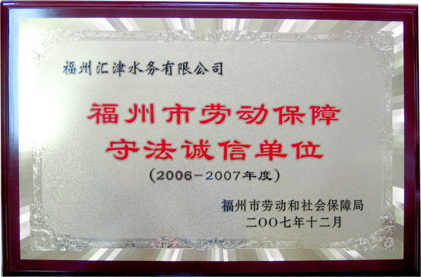 荣获福州市劳动和社会保障局颁发的2006-2007年度“福州市劳动保障守法诚信单位”称号