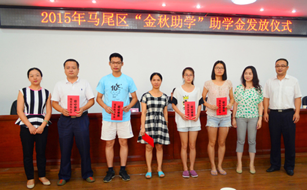8月28日上午,在我区举办的“金秋助学”活动现场,福州胜科员工“爱心基金”为即将迈进高校的5名寒门学子每人捐助3000元学费,狄宏波副总经理代表全司员工向学生颁发助金,祝福即将跨入大学校园的娇子,希望他们把社会各界的关心和支持转化为学习、发展的动力,自信、自强、自立,立足社会,回报社会!
