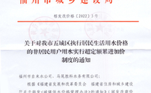 尊敬的自来水用户:由于今年6月以来气象干旱,白眉水库蓄水不足,按目前用水量预测,库存水量可供水不到两个月。为保证全区不间断供水,经马尾区政府批准同意从2020年11月11日起,启用闽江应急水源,与白眉水库原水进行混合生产。在双水源生产期间,我司将针对闽江原水的特点,采取避咸取淡、加强工艺控制、增加水质检测项目和频次等多种措施,确保供水水质符合国家生活饮用水卫生标准。但因闽江原水受咸潮的影响,自来水